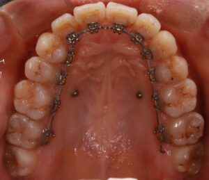 奥に引っ張られた分、前歯の隙間が少し開いてきたので、次はここも埋まるようにしていきます。